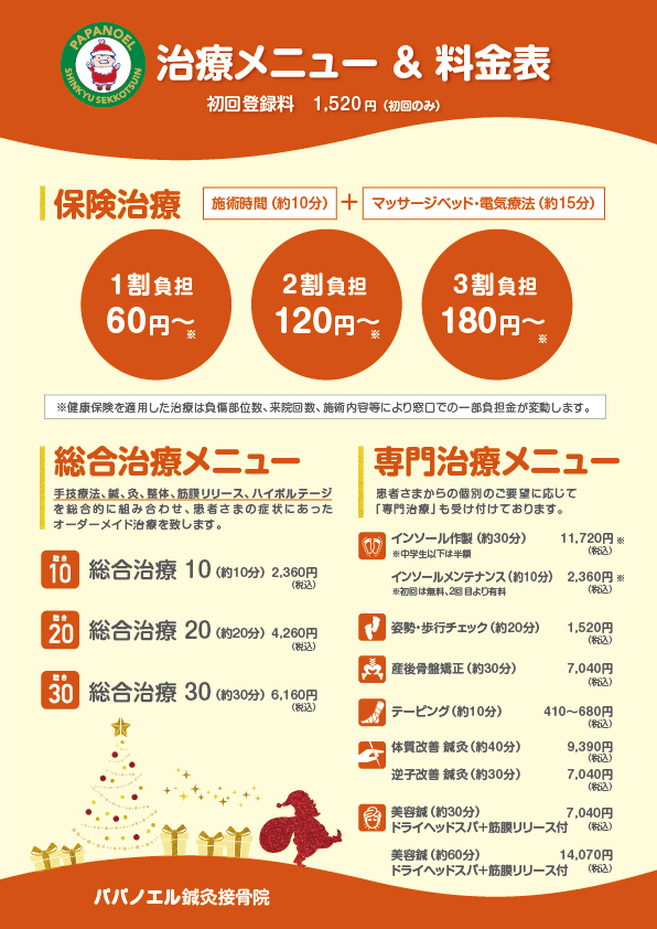 自賠責保険適用で自己負担0円で当院おすすめの総合治療コースとほぼ同等の施術が可能です。